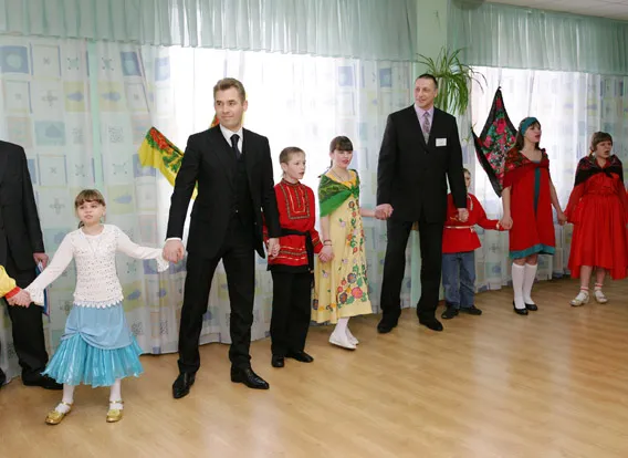 Venäjän lapsiasiamies Pavel Astahov tapasi siperialaislapsia Krasnojarskin kuntoutuskeskuksessa helmikuussa 2010. Kuva Konstantin Ushakov / Lehtikuva.
