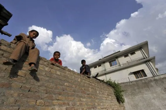 Paikalliset pojat kapusivat muurille Osama bin Ladenin asuinpaikan edustalla Abbottabadissa Pakistanissa 4. toukokuuta. Kuva Aamir Qureshi / AFP / Lehtikuva.
