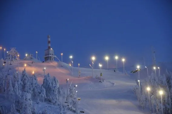 Rukan laskettelurinne Kuusamossa 24. marraskuuta 2010. Tuolloin oli kirkas taivas ja parinkymmenen asteen pakkanen. Kuva Timo Jaakonaho / Lehtikuva.