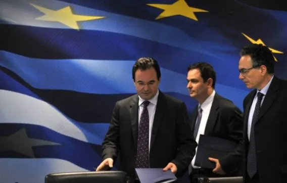 Krikan valtiovarainministeri George Papaconstantinou tiedotustilaisuudessa Ateenassa 20.huhtikuuta. Kuva Nikolas Giakoumidis / AP / Lehtikuva.