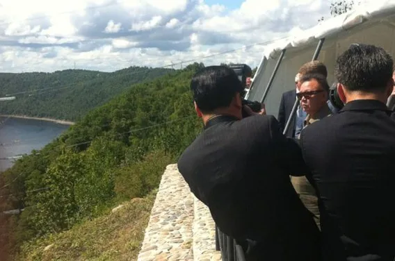 Pohjois-Korean johtaja Kim Jong Il tutustui voimalaitokseen Talakanissa Venäjän kaukoidässä 21. elokuuta. Kuva AFP / Lehtikuva.