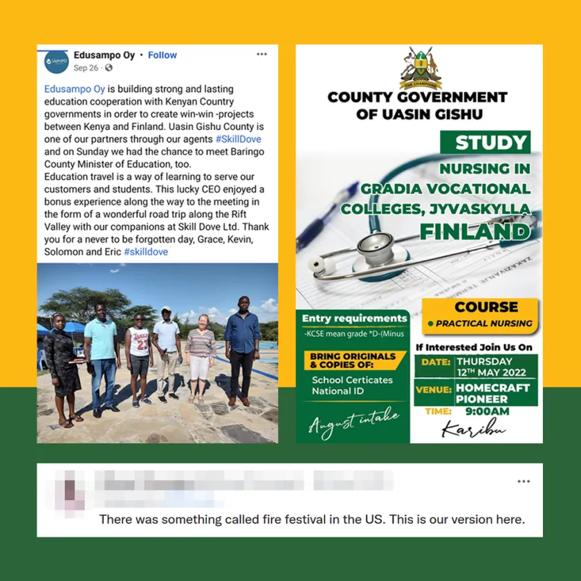 Keniassa on liikkunut jo pidempään huhuja Suomessa järjestetyn koulutuksen ongelmista.
