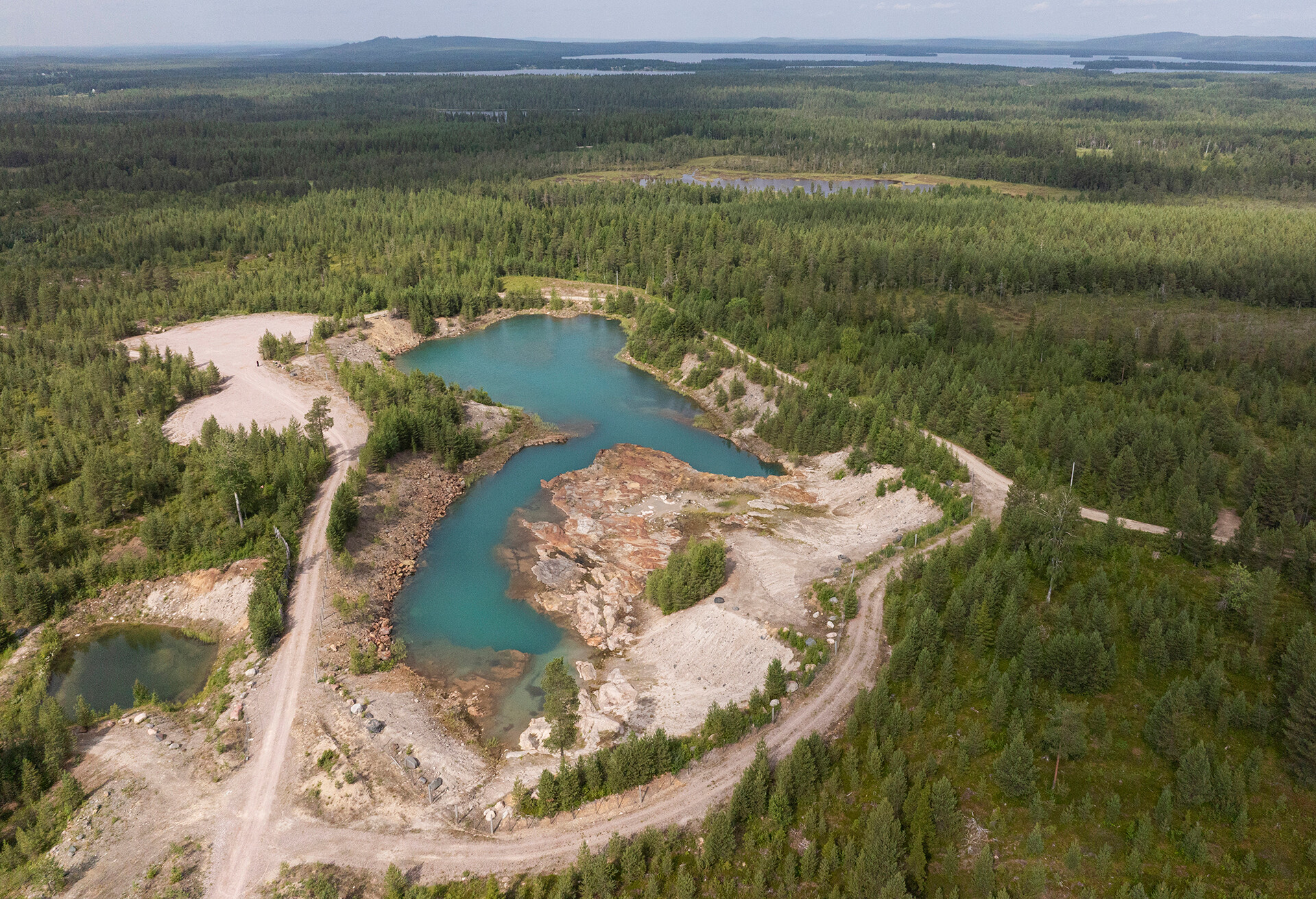 Koelouhos on suljettu verkkoaidalla. Louhoksen pohjalla hohkaa turkoosinsininen vesi, reunoilla puskevat koivut. Kun tänne oli tuotu geigermittari, laite oli kuulemma rätissyt. Tiedetään, että kullan ja koboltin seassa on uraania. Sekin huolettaa kaivoksen vastustajia.
