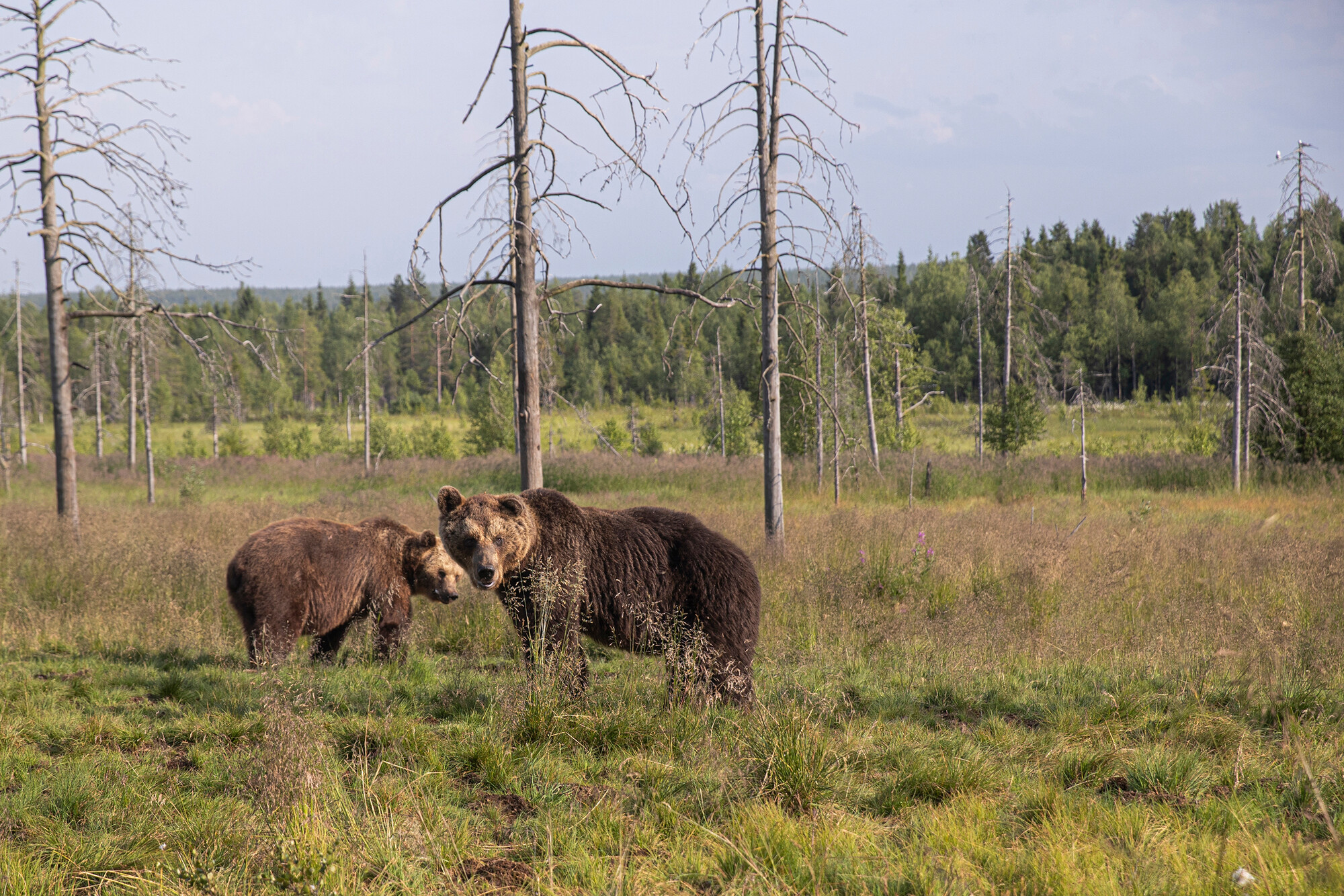 Karhuja löntystää ympäri suota, kuonoihin katoaa kalanperkeitä ja koiranmuonaa. Tällä kertaa ei tapella ruokintapaikan kuninkuudesta. Ehkä helle hillitsee uroksia.