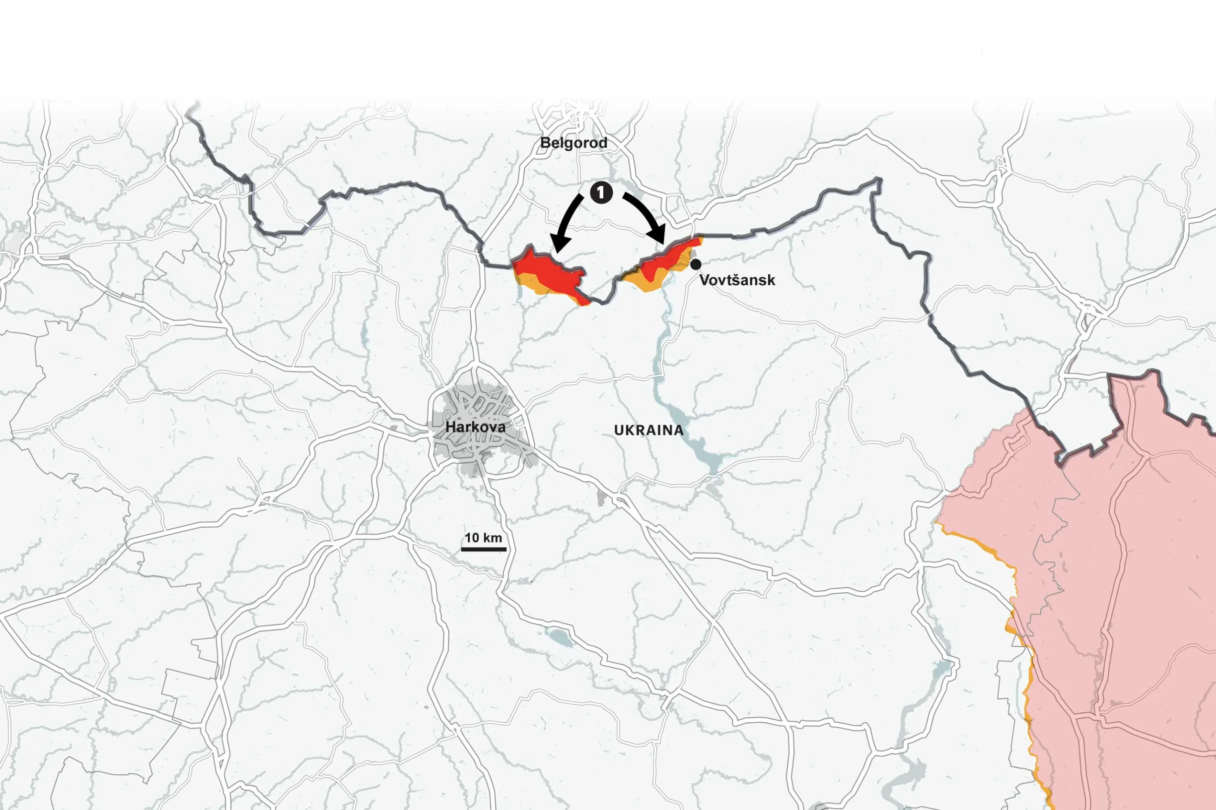 Venäjä on vallannut alueella useita kyliä toukokuussa 2024. Rintama kulkee noin 30 kilometrin päässä Harkovasta, joka on Ukrainan toiseksi suurin kaupunki.