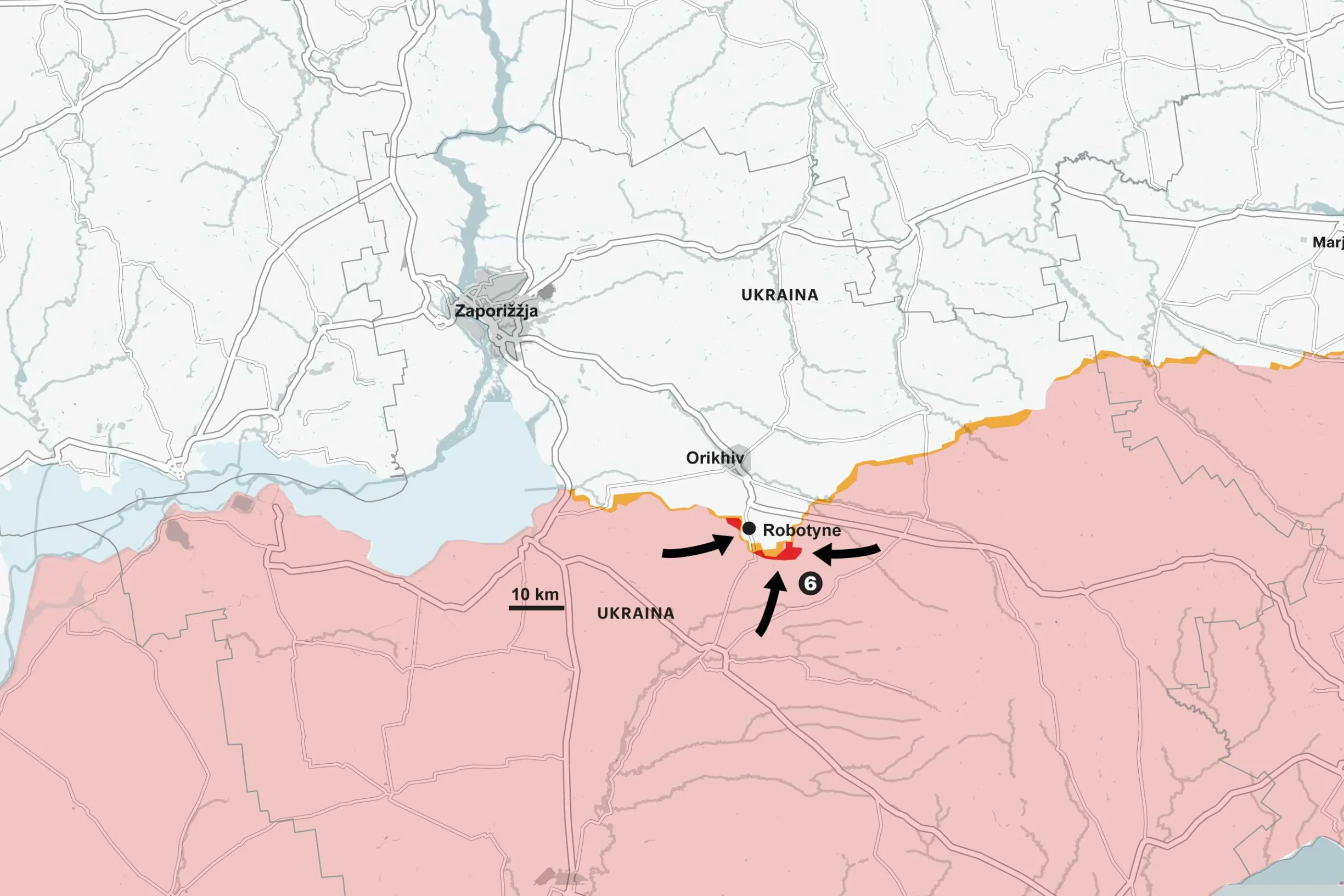 Vertailun vuoksi Ukraina valloitti syksyllä 2022 kuudessa päivässä takaisin 3 000 neliökilometriä maa-alueita, kun venäläisten puolustus Harkovan alueella murtui.