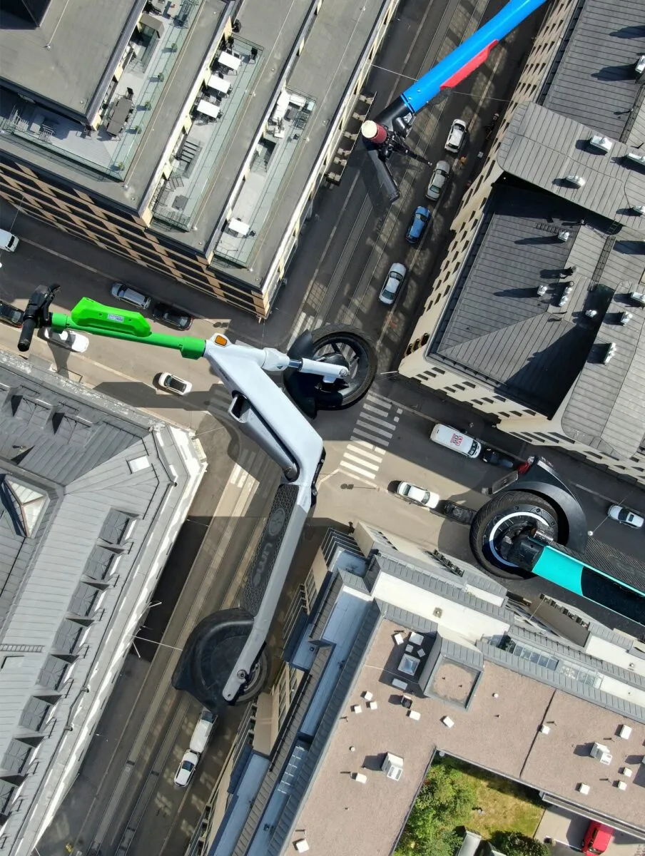 Kun potkulaudasta loppui akku, sähköjarrut eivät enää toimineet. Innostuneet kaupunkilaiset potkivat ”vapautuneilla” laudoilla pitkin katuja. Työntekijät kiertelivät etsimässä potkulautoja.