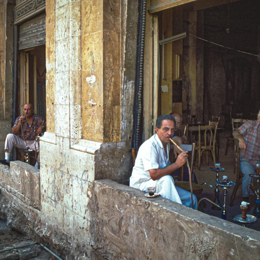 Olen saapunut kylään puhuakseni Jamal Hosnin kanssa. Hän on säveltäjä ja taitelija. Tapasimme maaliskuun puolivälissä matkalla Dubaista Beirutiin. Hän istui vieressäni lentokoneessa. Meillä oli paljon yhteistä: kiinnostus valokuvaukseen ja Libanonin historiaan.